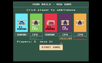 All aboard! Iron Rails is a railway strategy game exclusively for the Commodore Amiga, inspired by the classic board game genre of route-building and destination racing.