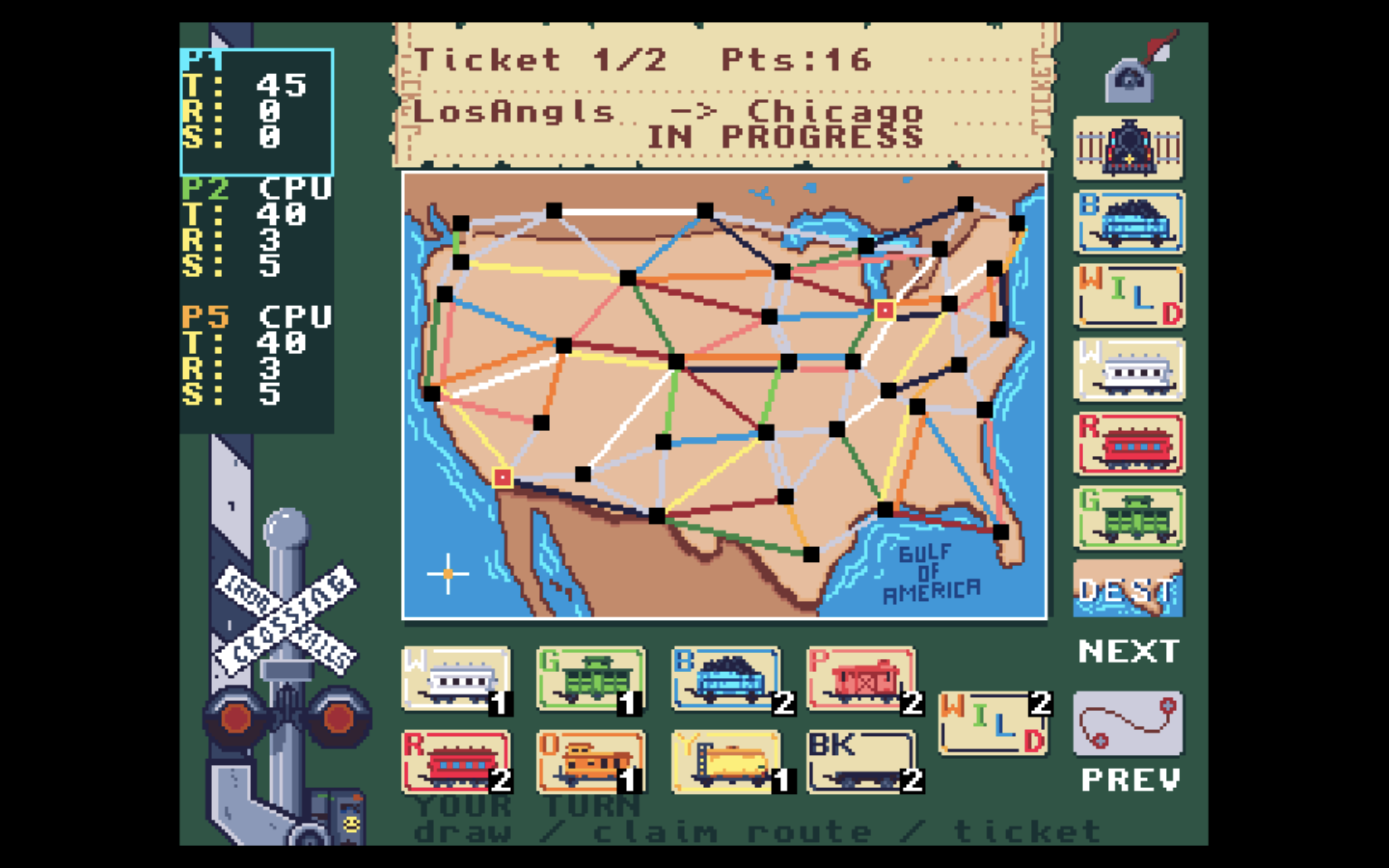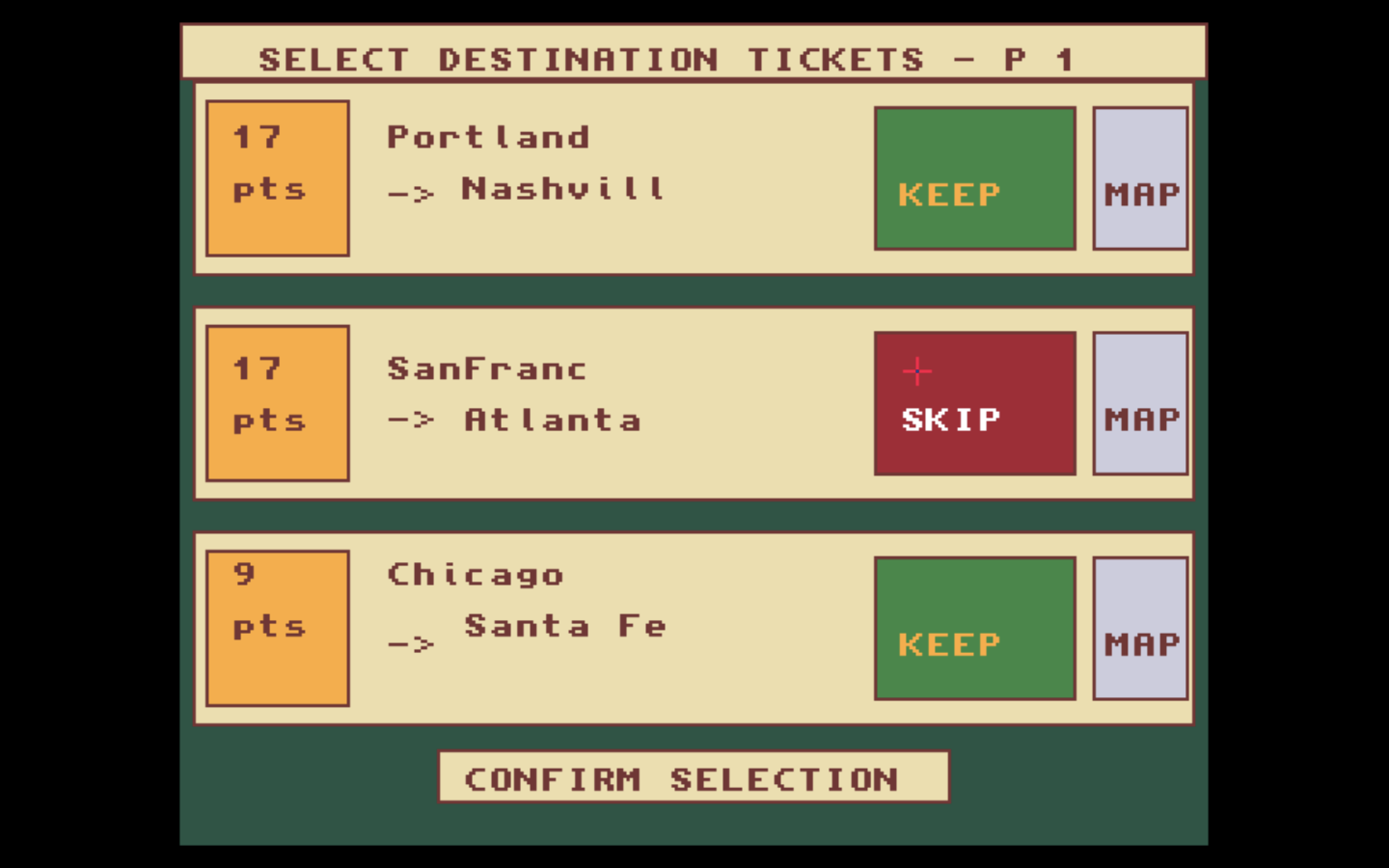- Three CPU difficulty levels with strategic AI that plans ticket routes, blocks opponents, and adapts its play style
